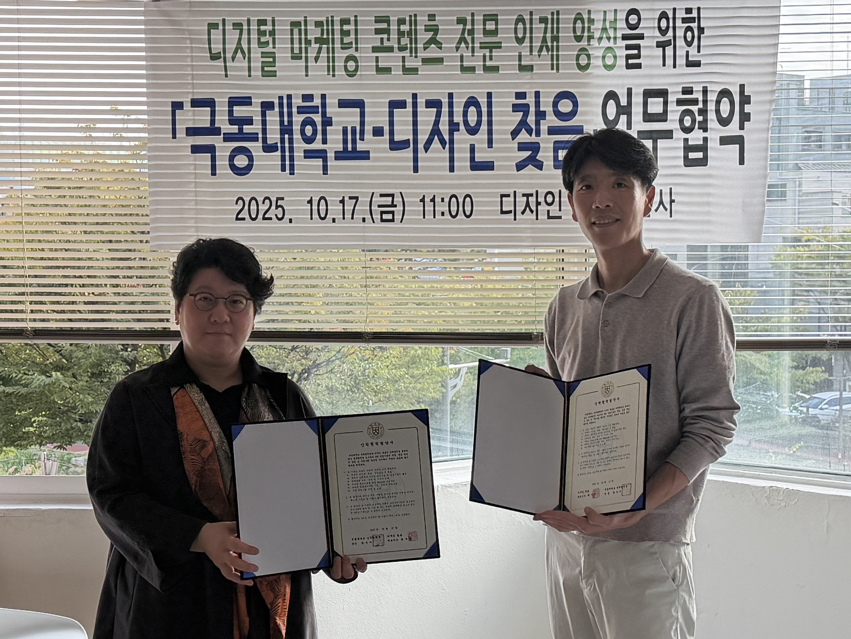 극동대학교 산학협력단(단장 양수미)디자인찾음(대표이사 최지민)1017일 서울 성수동 디자인 찾음 본사에서 **산학협력을 통한 실무형 교육 강화 및 지역사회 발전을 위한 업무협약(MOU)**을 체결했다.