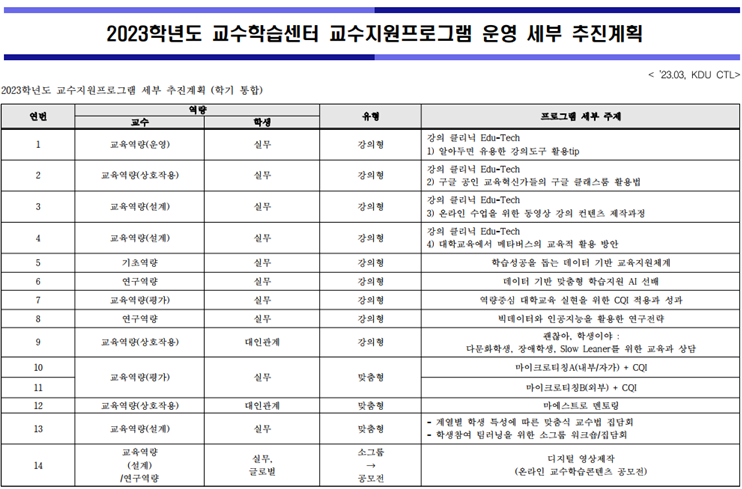 2023학년도 교수지원프로그램 운영 추진계획