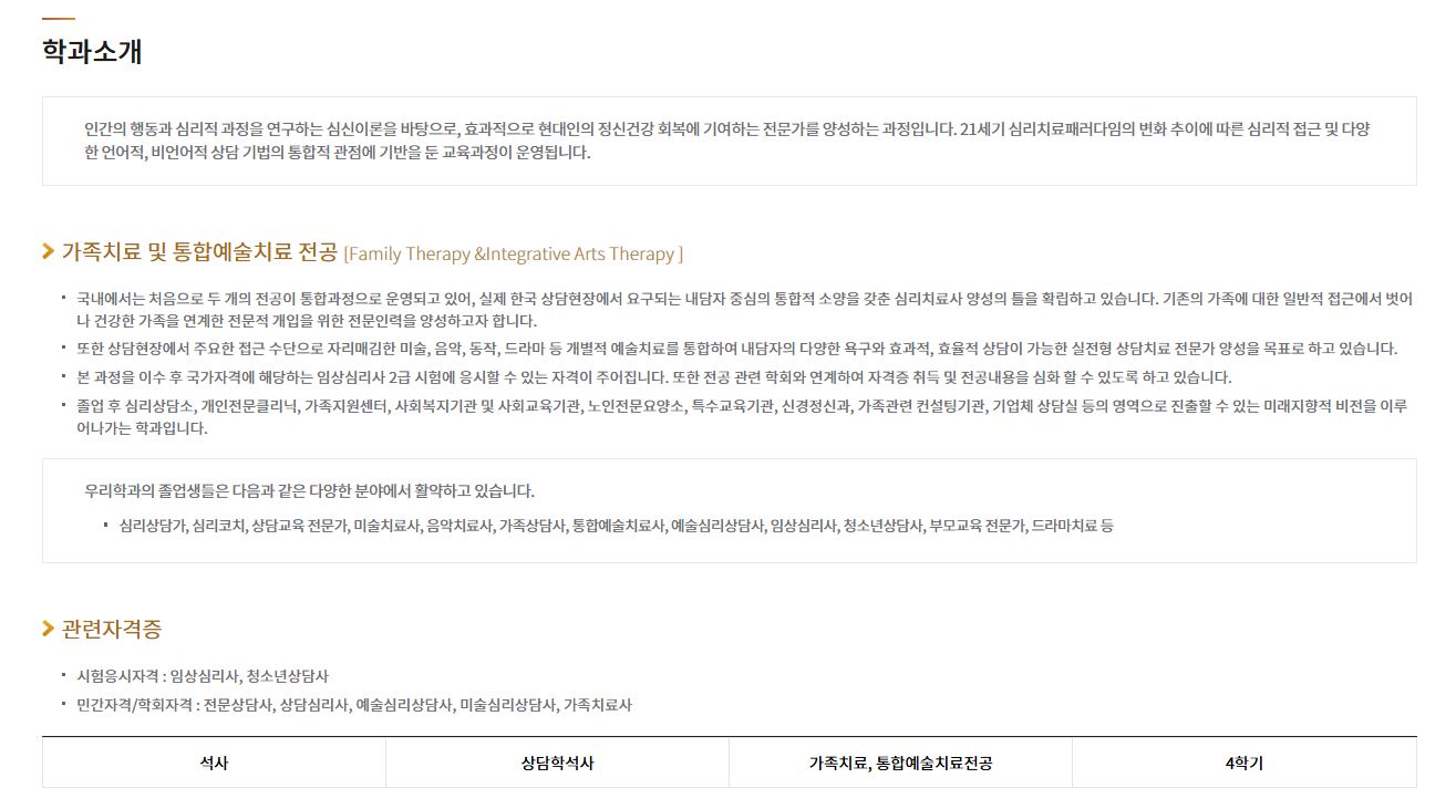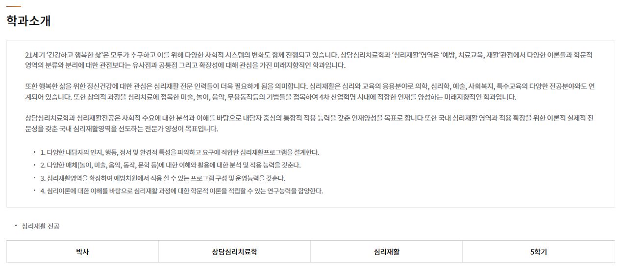 심리·예술·재활의 융합적 전문성을 갖춘 상담심리치료 전문가를 양성합니다.