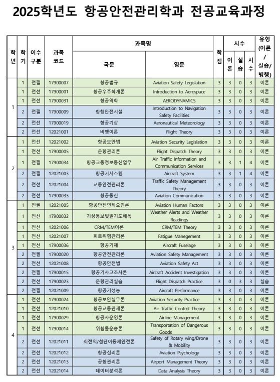 항공안전관리학과 교육과정