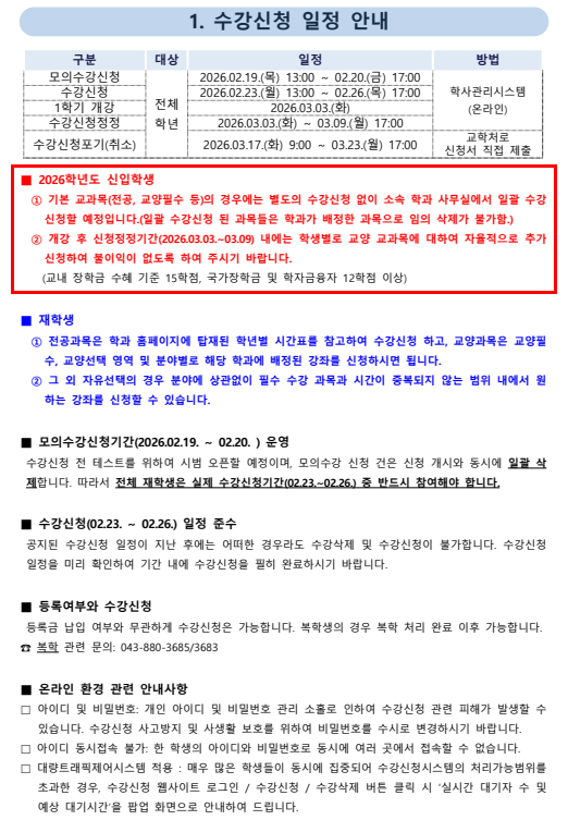 2026학년도 1학기 수강신청 안내문