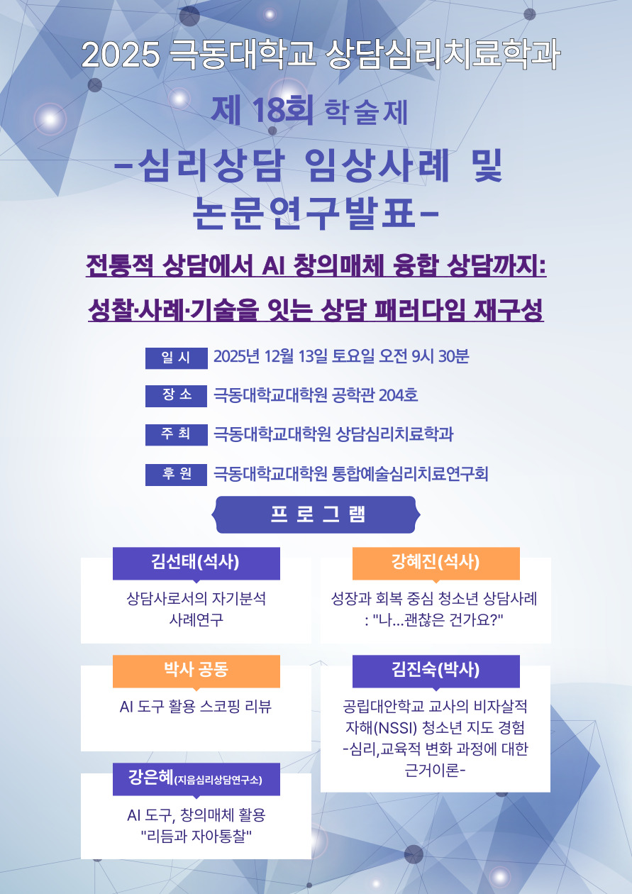[보도자료] 극동대학교 대학원 상담심리치료학과 "AI 융합 상담으로 청소년·가족 정신건강 지원의 새로운 모델 제시"