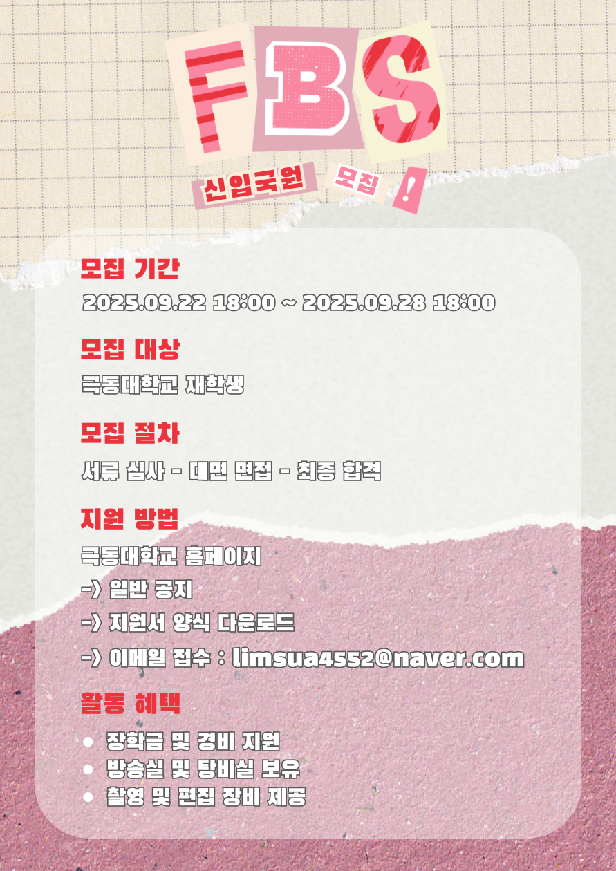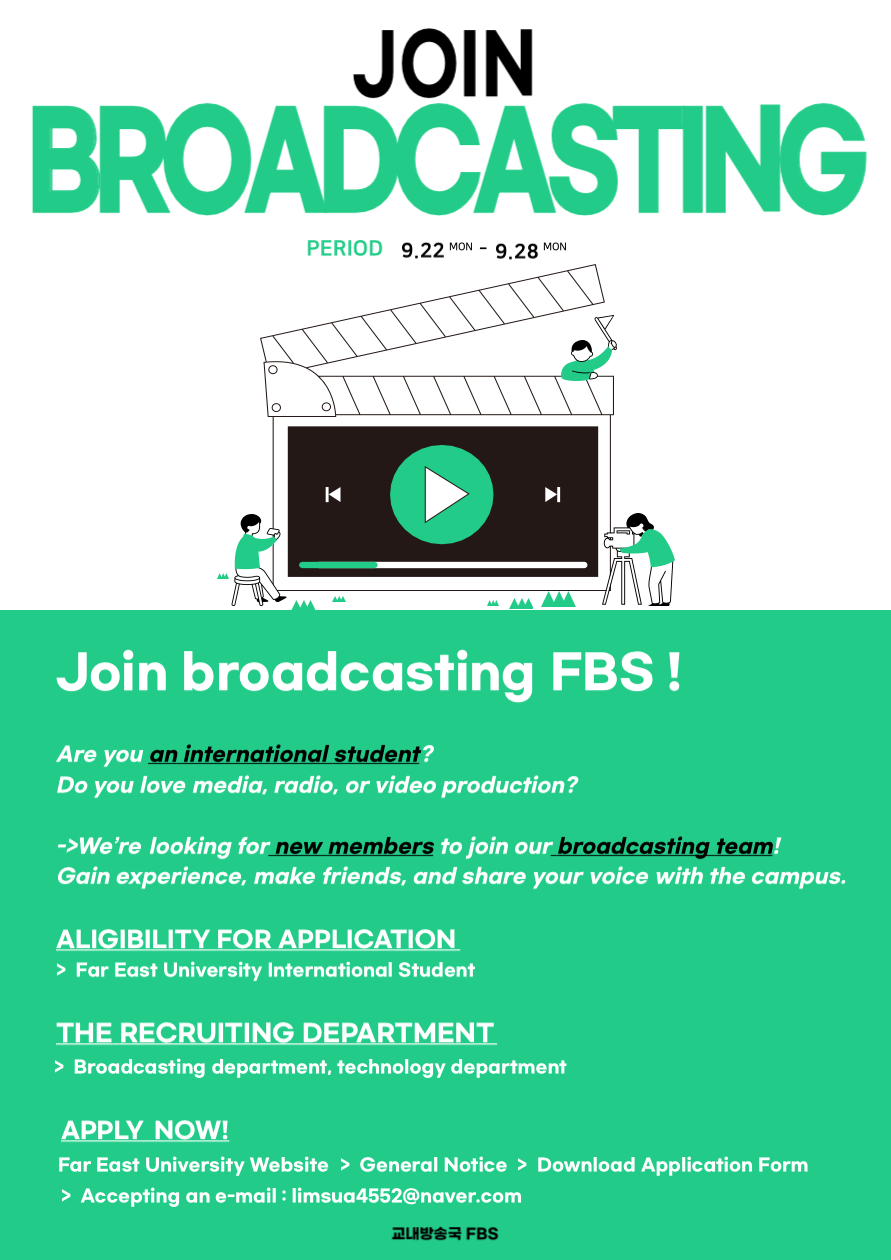 극동대학교 교내방송국(FBS) 신입국원 모집 안내
