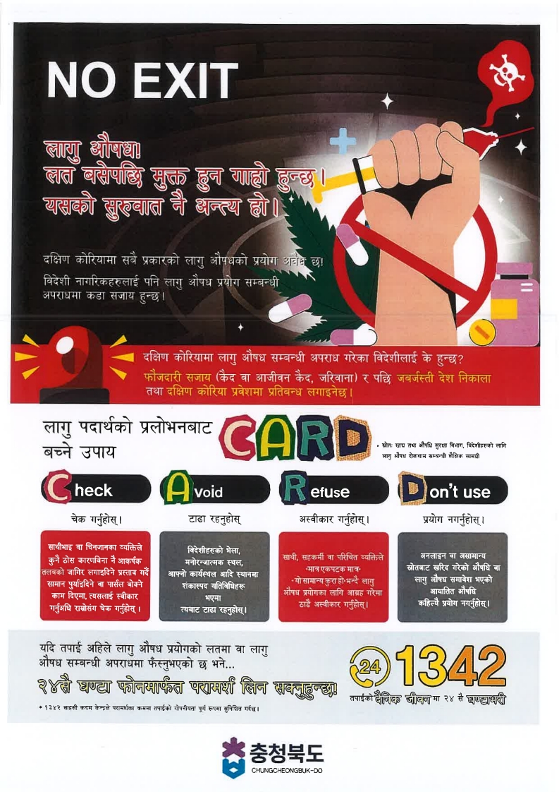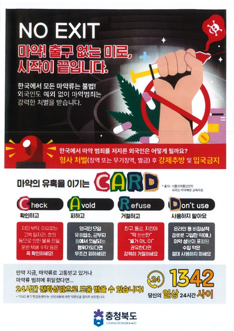 [충청북도] 외국인 대상 마약 예방 다국어 안내자료 배포 (Drug Warning for International Students)
