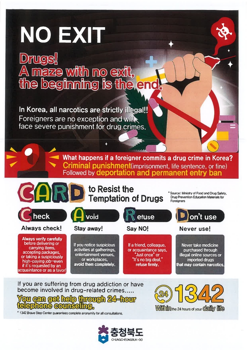 Drug Warning from Chungcheongbuk-do for International Students