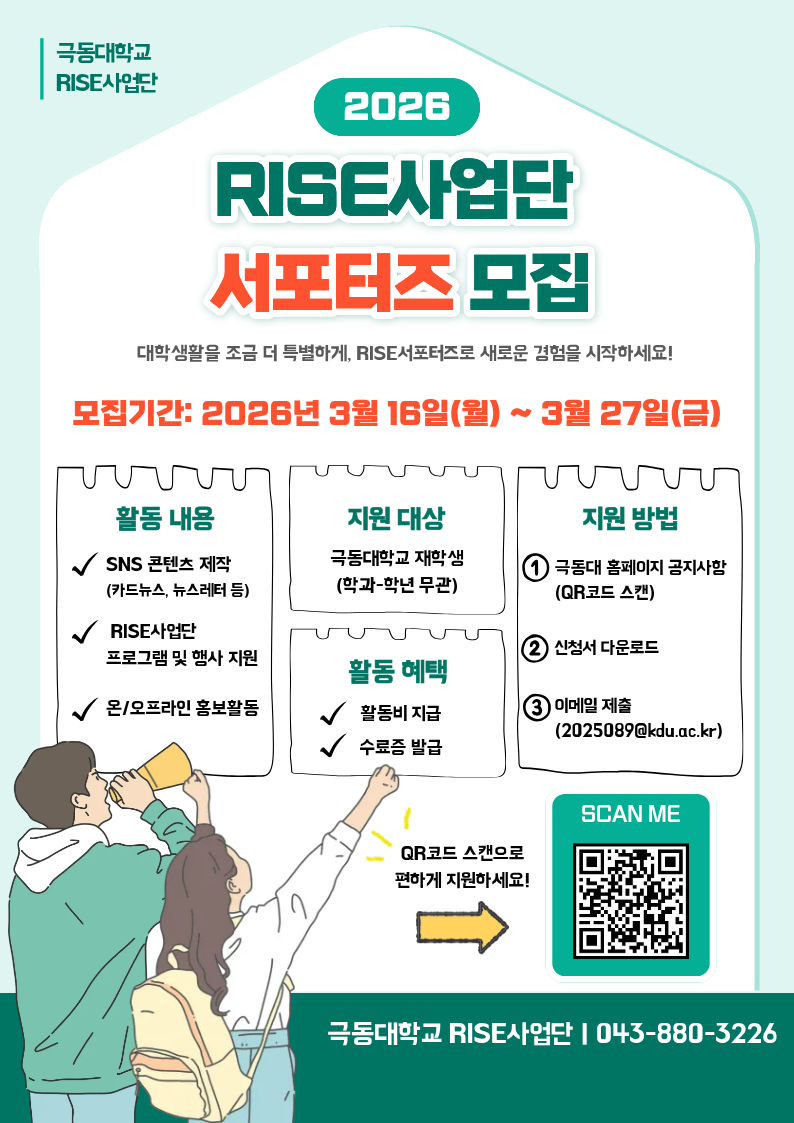 - 제출서류: RISE서포터즈 지원서(파일명: RISE서포터즈 지원서_홍길동)