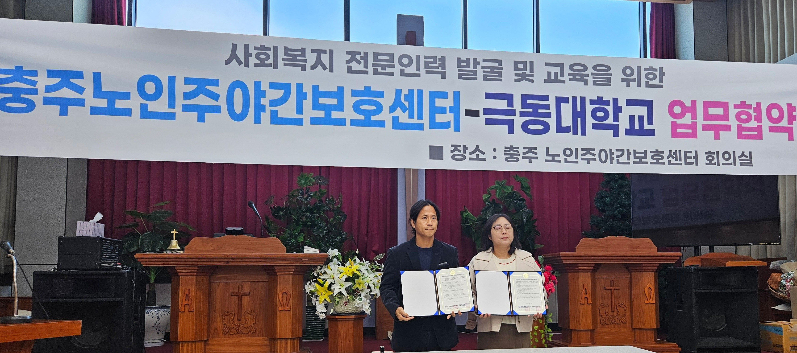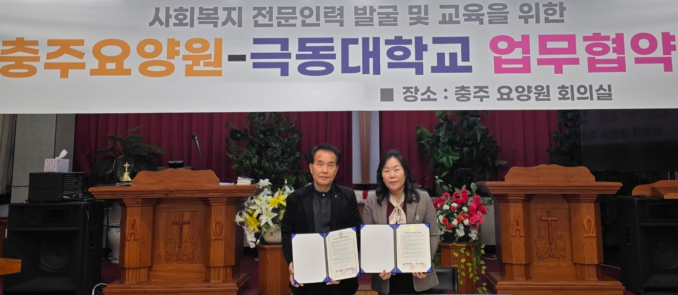 한편, 새로남교회 백장현 목사는 “극동대의 인적자원과 전문성이 충주지역 노인복지 향상에 활력을 불어넣길 기대한다”고 전했고, 양지요양원 이민규 원장은 “지역 내 취약계층 시니어에게 실질적인 도움을 줄 수 있는 뜻깊은 협약”이라며 감사의 뜻을 전했다.