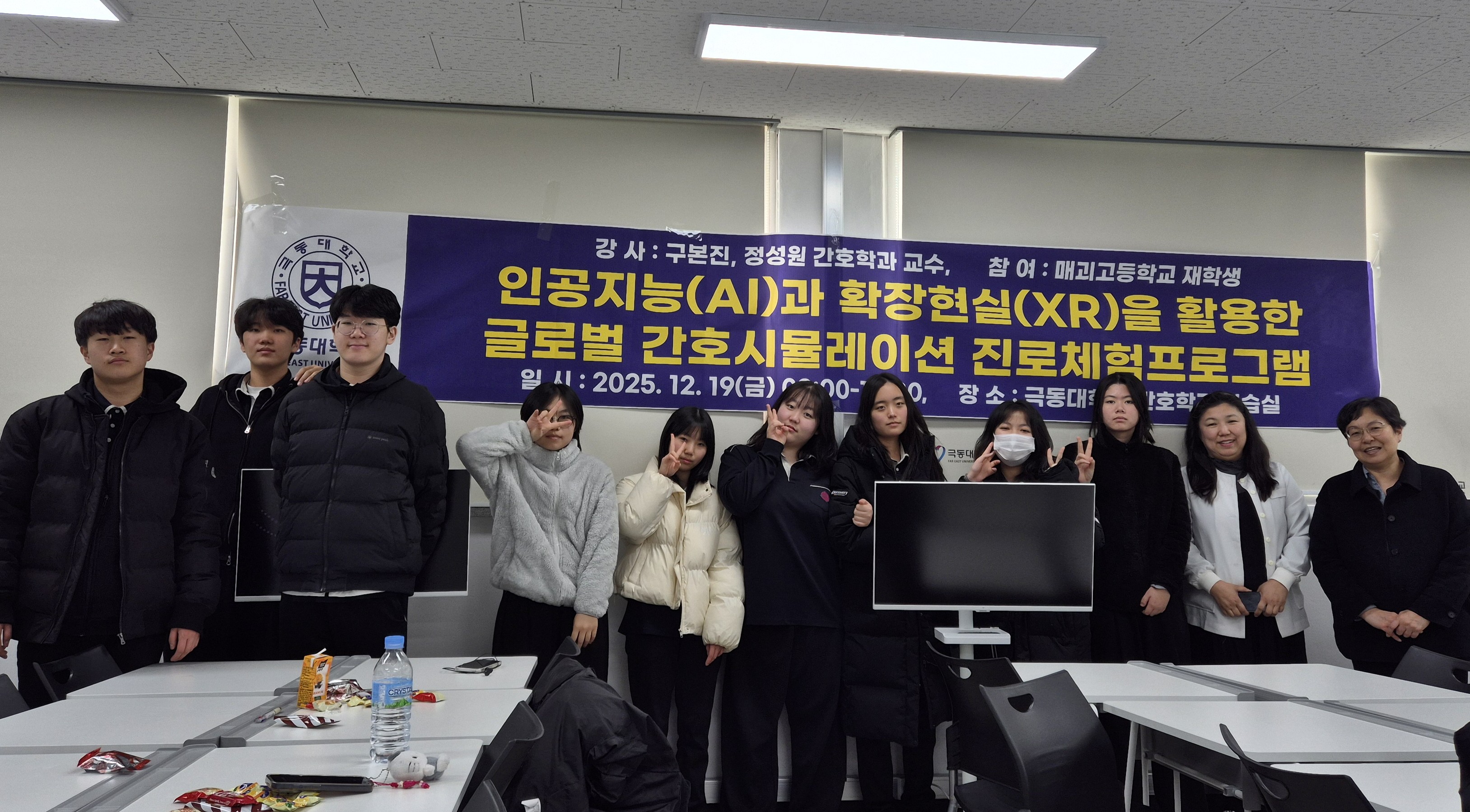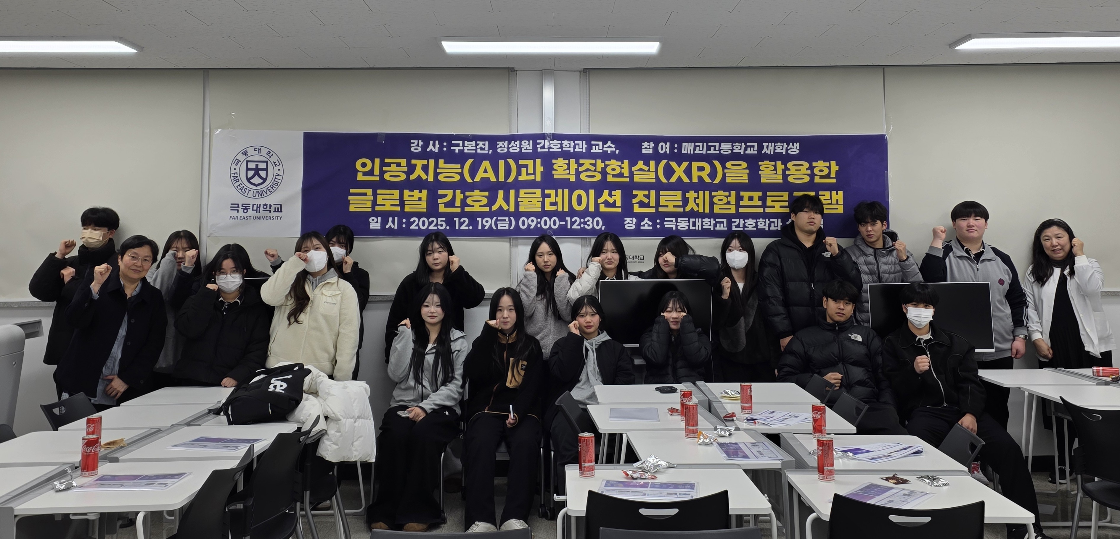 극동대학교(총장 류기일) 간호학과는 지난 12월 10일부터 19일까지 음성군 내 대소중학교와 매괴고등학교 학생들을 대상으로 ‘AI·XR 기반 시뮬레이션 간호 진로체험 프로그램’을 성공적으로 운영했다고 22일 밝혔다.