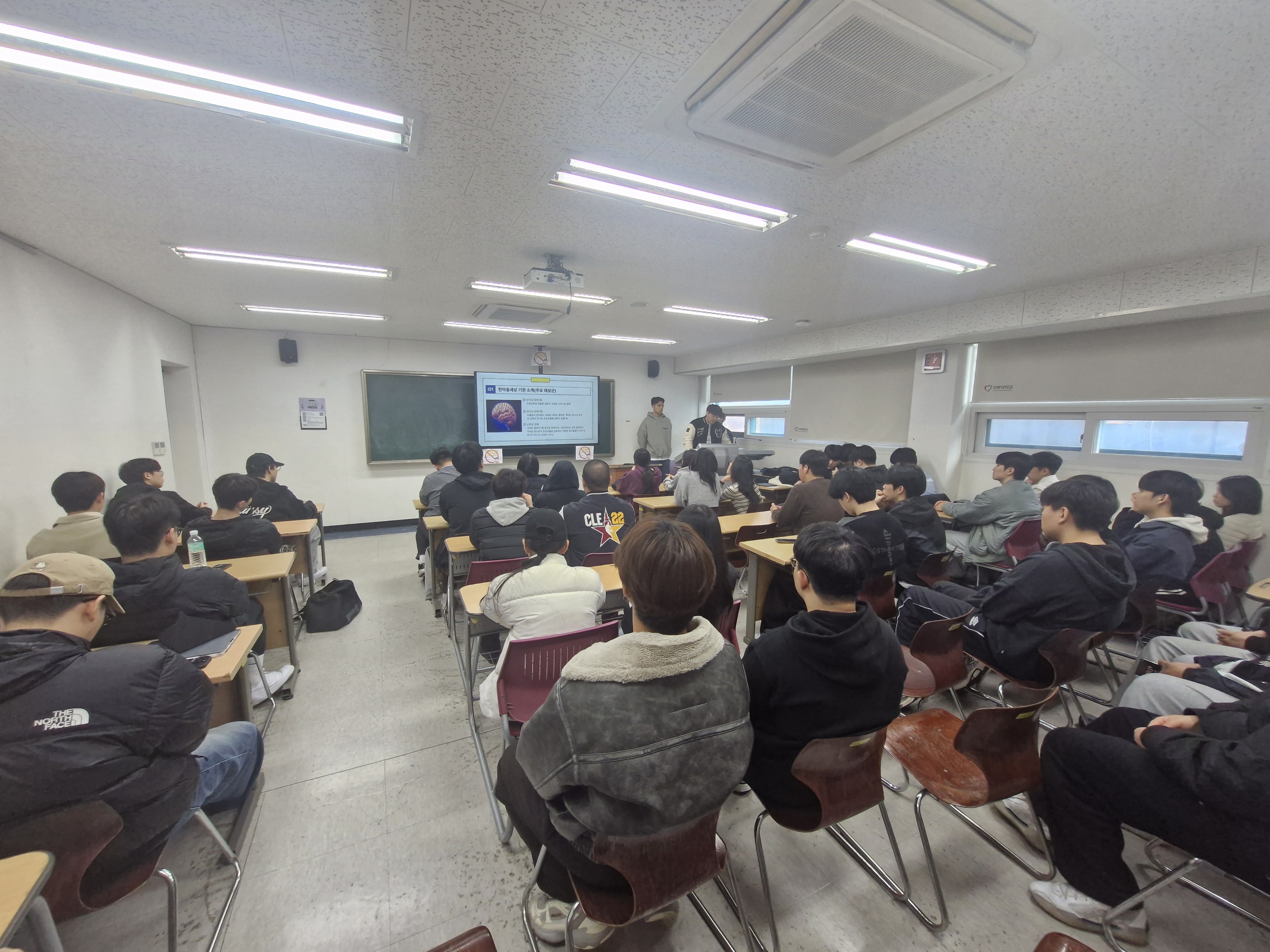 ▲ 극동대학교 작업치료학과 학생들이 교내에서 열린 정신보건실습 발표회에서 실습 사례와 학습 성과를 발표하고 있다.
