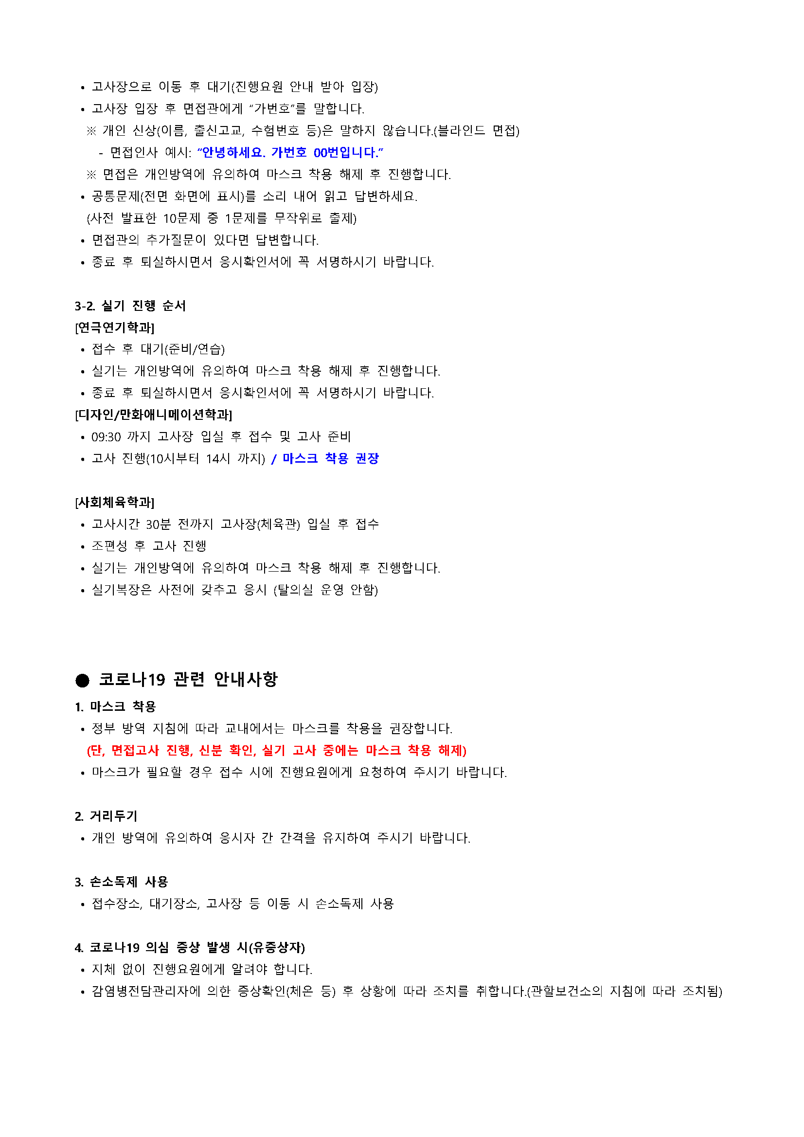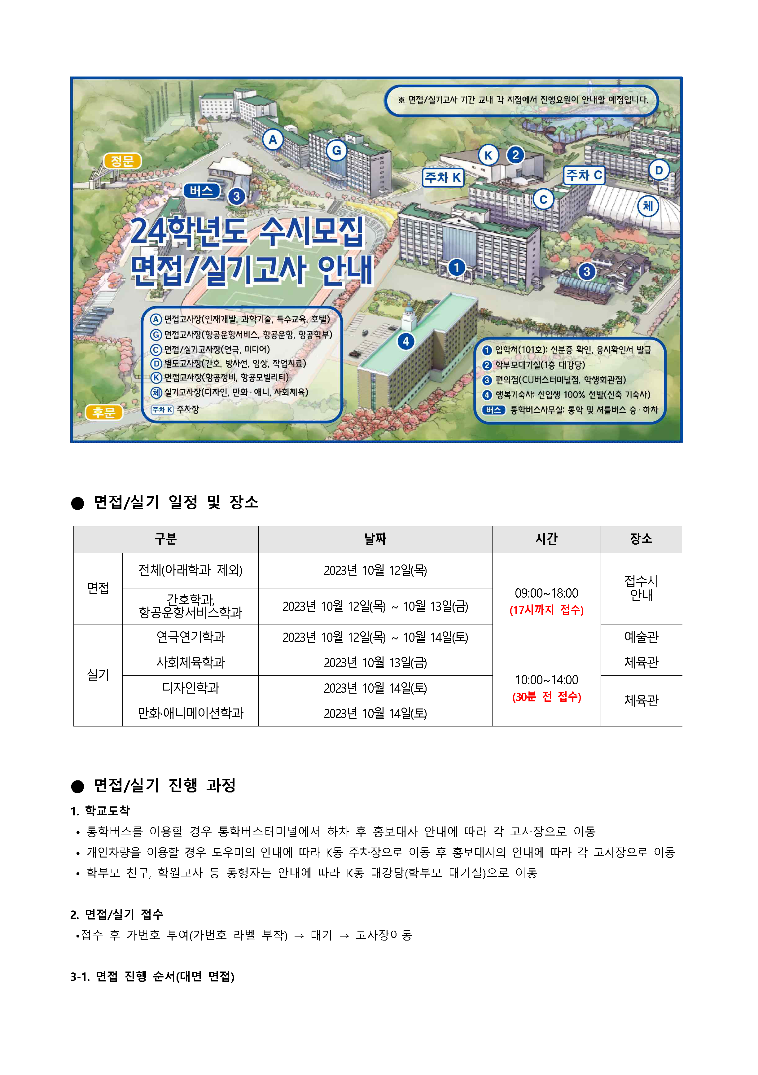 ※ 2024학년도 수시모집 면접실기고사와 관련된 안내 사항은 첨부파일을 다운받아 확인하시기 바랍니다.