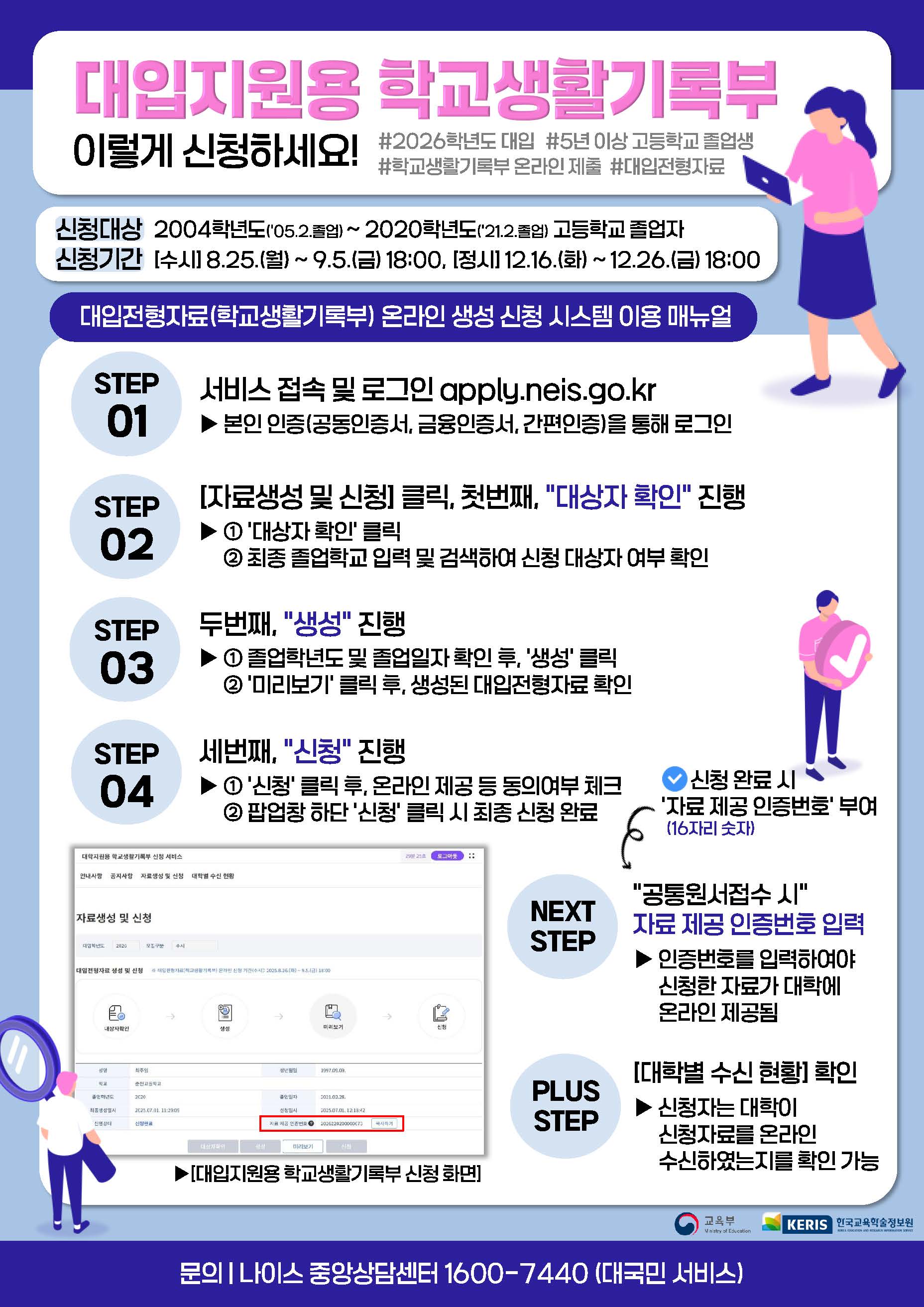 - 대입전형자료 온라인 생성신청 시스템 URL주소 : apply.neis.go.kr