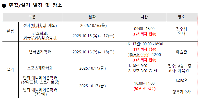 ※ 2026학년도 수시모집 면접/실기고사와 관련된 안내 사항은 첨부파일을 다운받아 확인하시기 바랍니다
