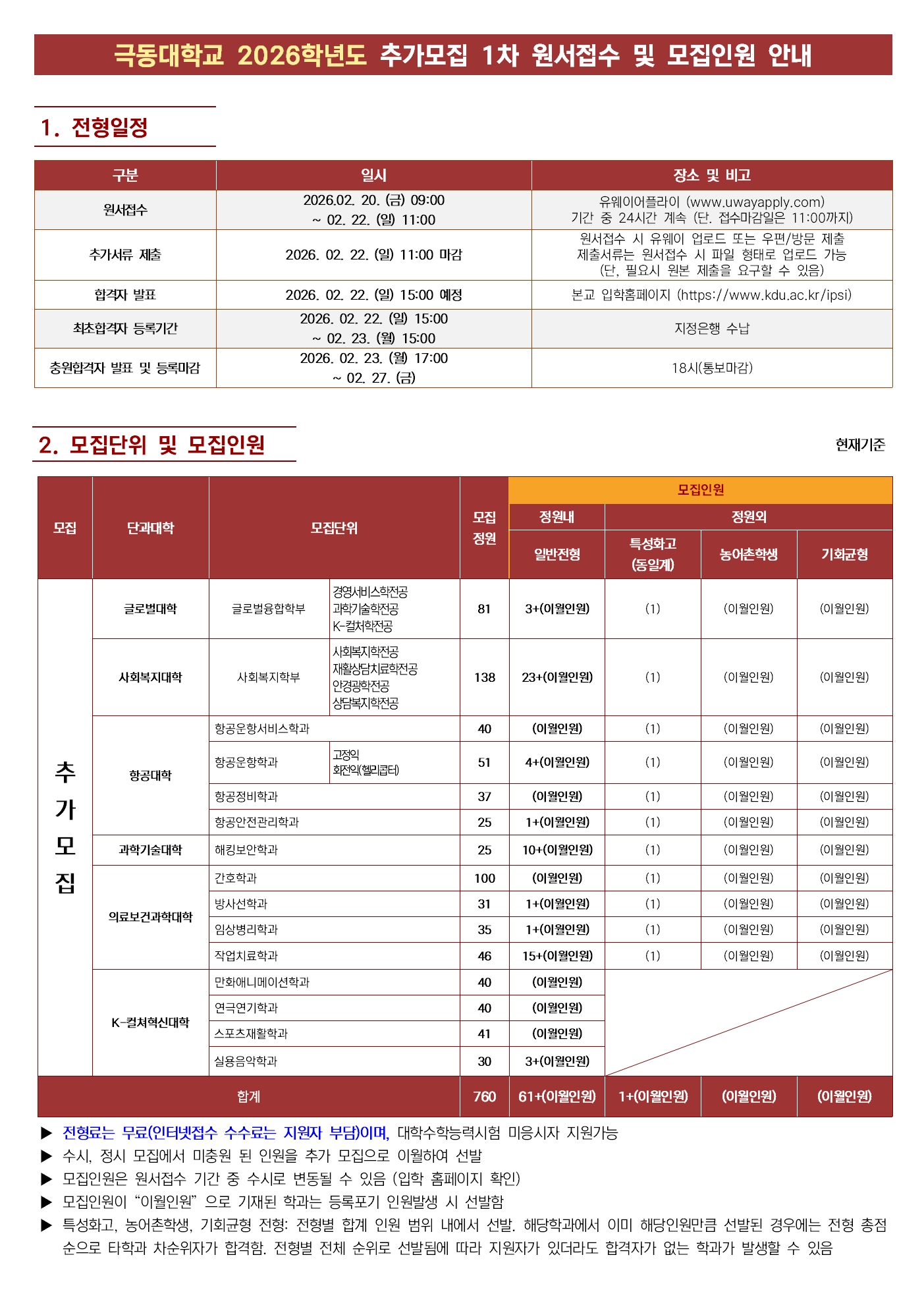 2026학년도 추가모집 1차 원서접수 안내