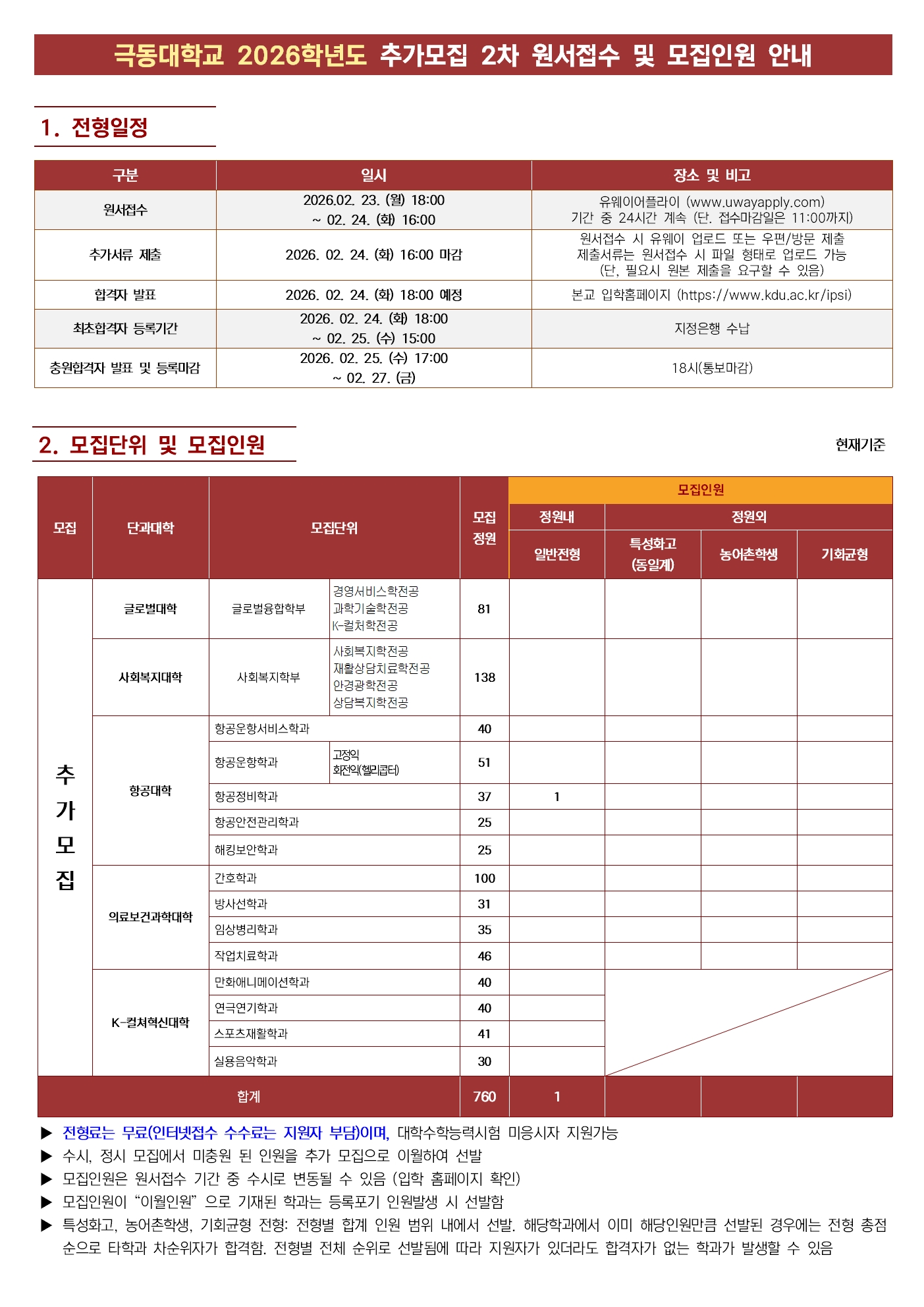 2026학년도 추가모집 2차 원서접수 안내