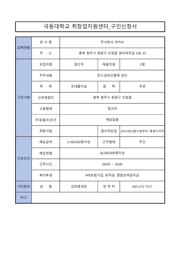 주식회사 코카브 채용