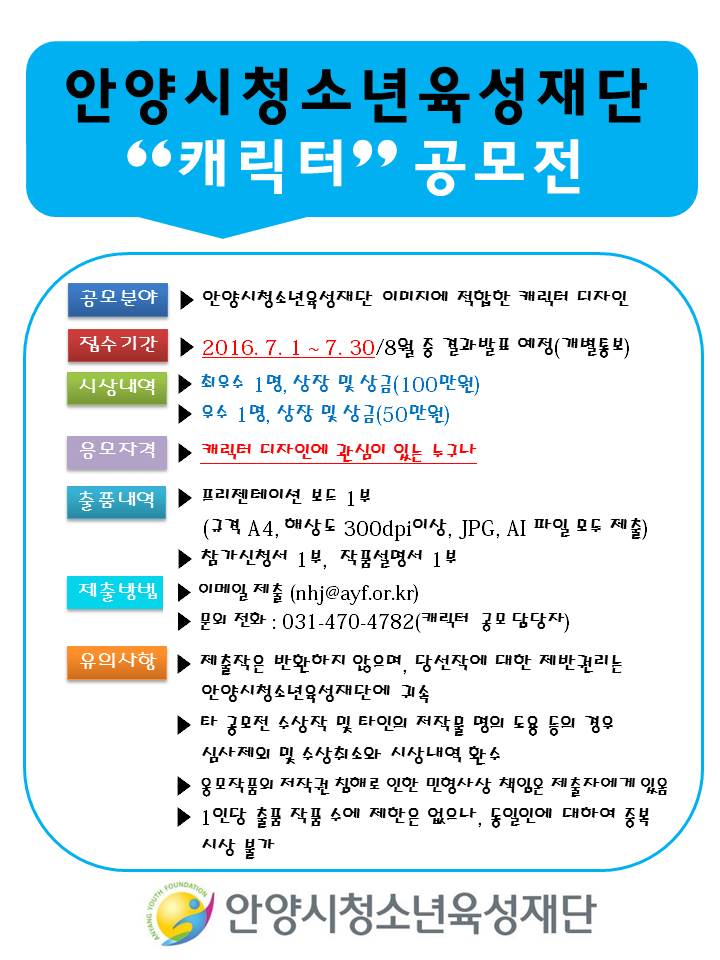 안양시청소년육성재단'캐릭터' 공모전 안내
