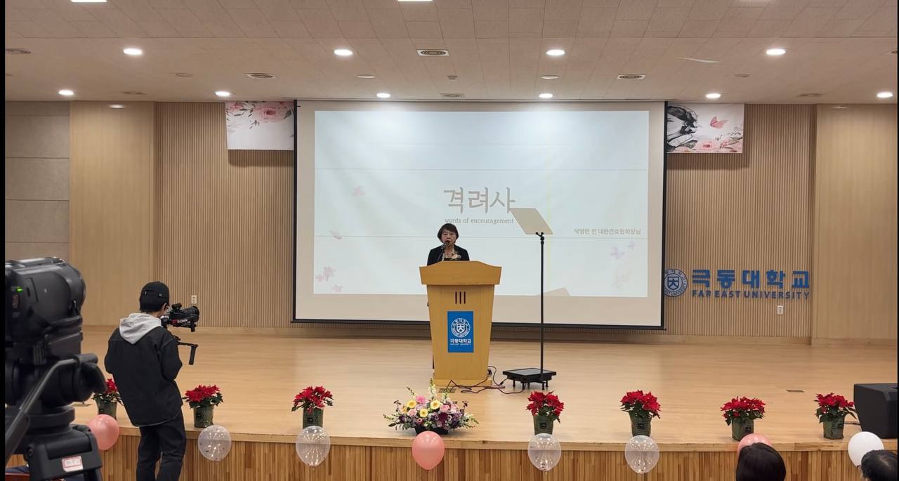 극동대학교 간호학과가 지난 20년간 쌓아온 헌신과 성취를 바탕으로, 이러한 변화의 중심에서 지역과 세계를 이끌 간호인재를 길러주시길 바랍니다.” 라고 전하며, 학과의 20년 성취를 축하하고 미래 간호사들에게 따뜻한 격려의 메시지를 전했다.