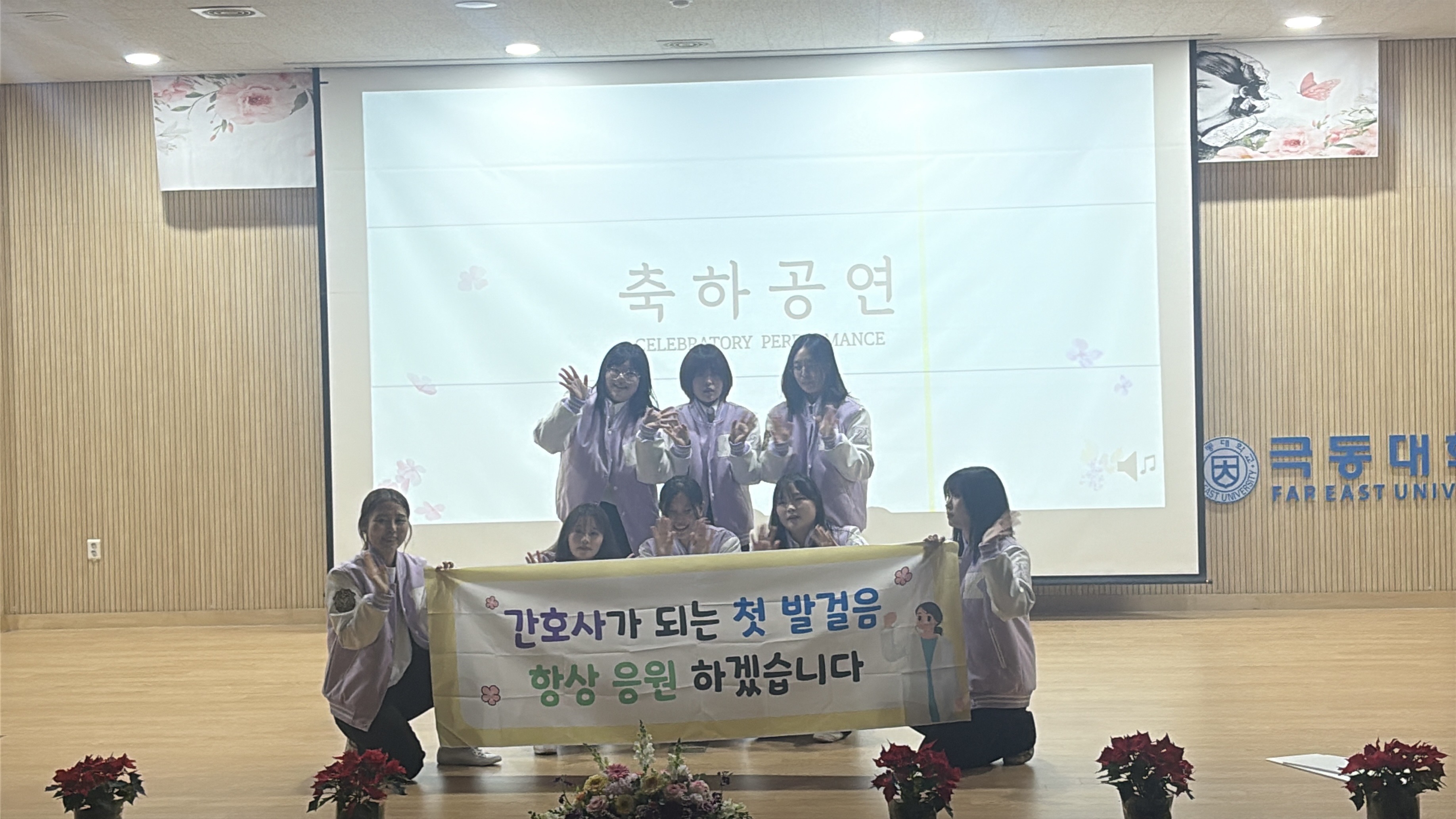 □ 류기일 극동대학교 총장은 “극동대학교 간호학과는 양질의 교육과정 혁신을 통해 글로컬 보건의료 인재양성의 중심으로 자리매김해왔습니다. 앞으로도 인간 중심의 간호교육과 디지털 헬스케어 교육을 선도하는 미래형 학과로 발전하길 기대합니다.” 라고 전하며, 학생들의 새로운 출발을 축하했다.