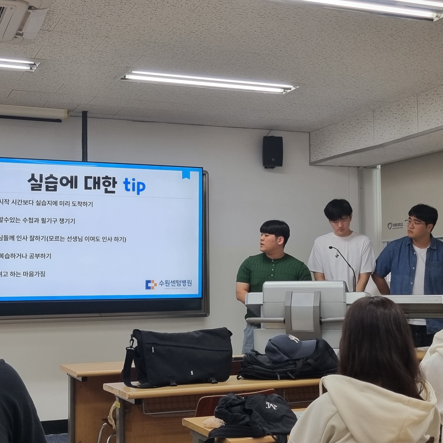 1학년 학우들에게 미래 하게될 실습에 관한 팁 등을 알려주었습니다.