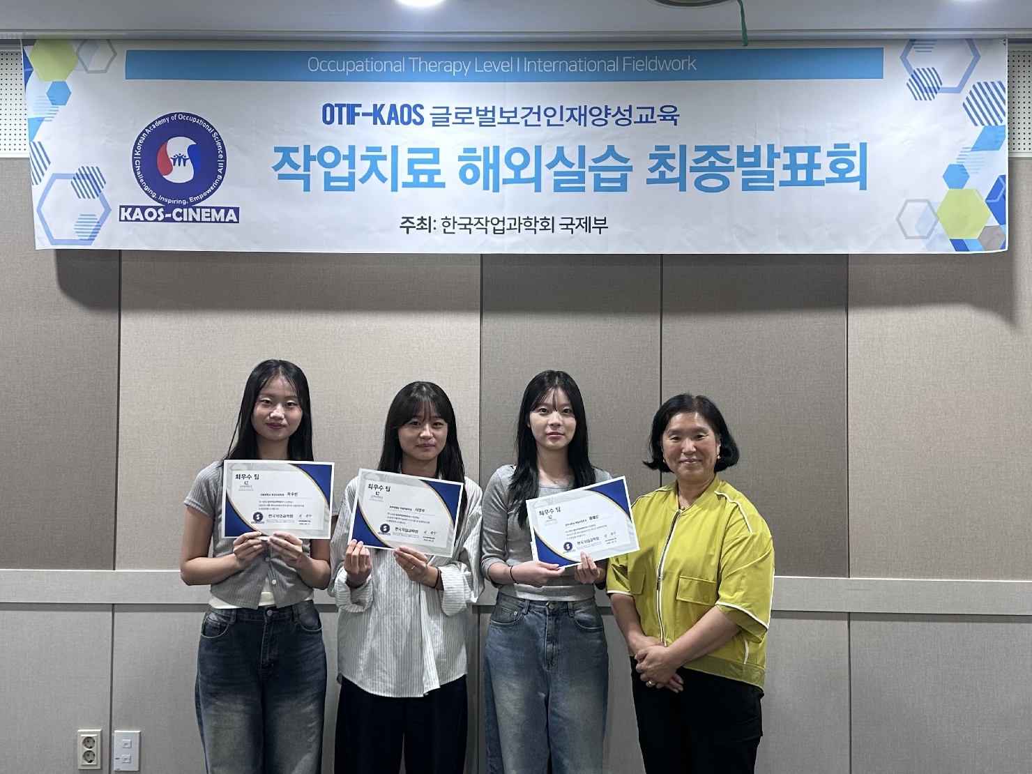 극동대학교 출판센터 :: 작업치료학과 차수빈 학우, 2025년 한국작업과학회 해외실습 최우수팀 수상