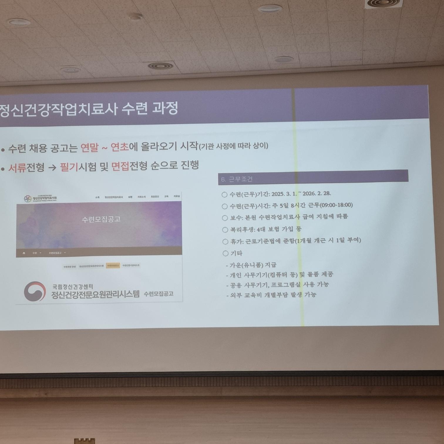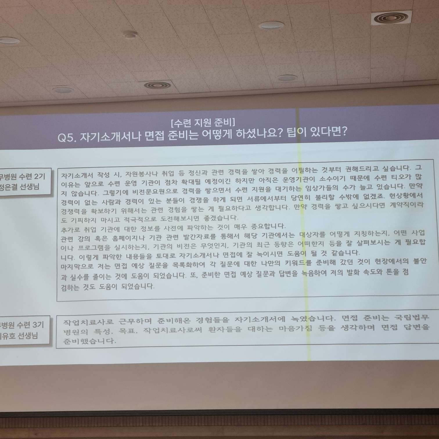 정신건강작업치료사 수련 과정과 자기소개서, 면접 팁등 유용한 정보를 얻을수 있는 시간이였습니다.