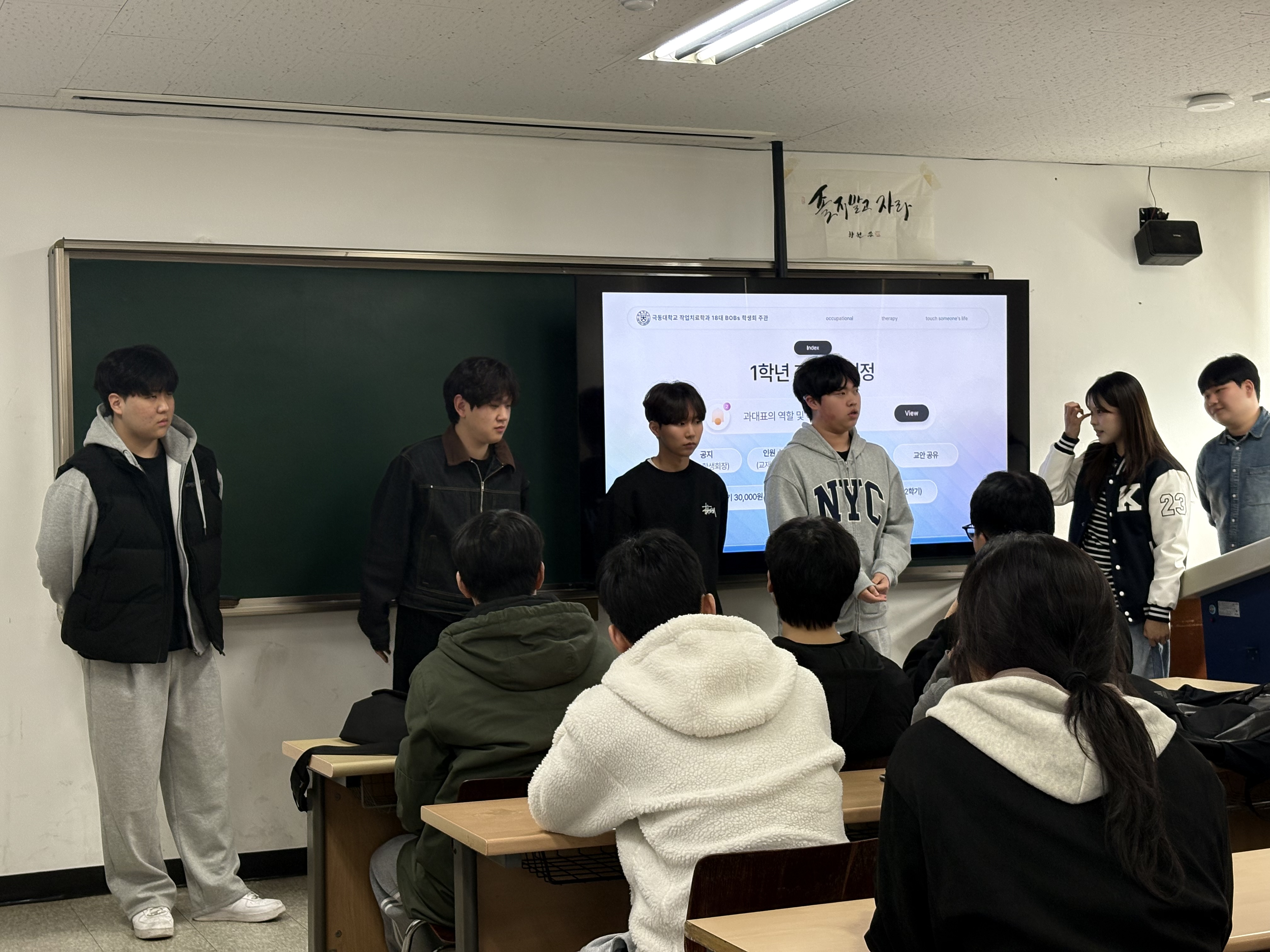 진행된 내용으로는 우선 새로이 1학년 과대를 선정하였습니다.