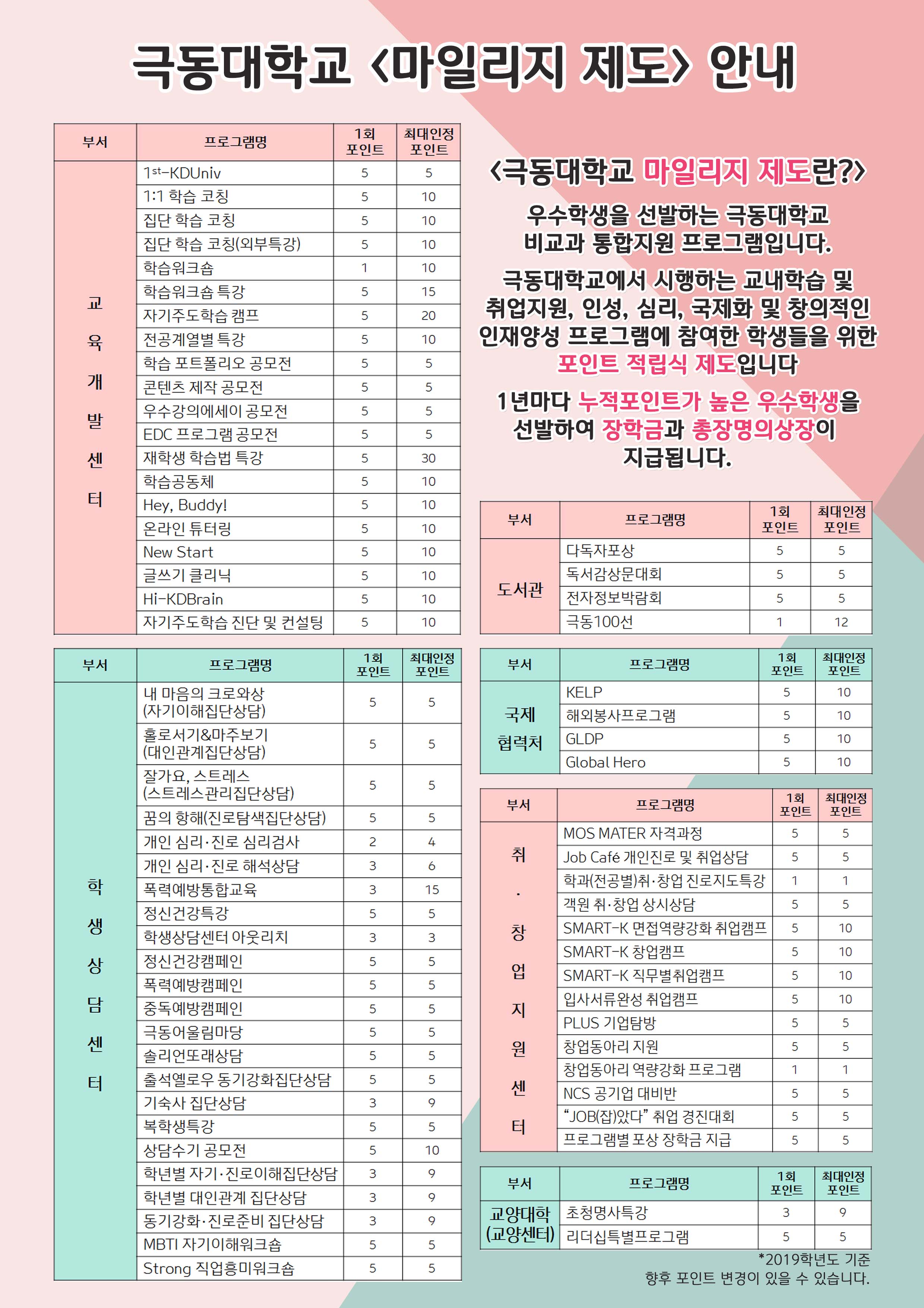 2019 마일리지 제도 안내