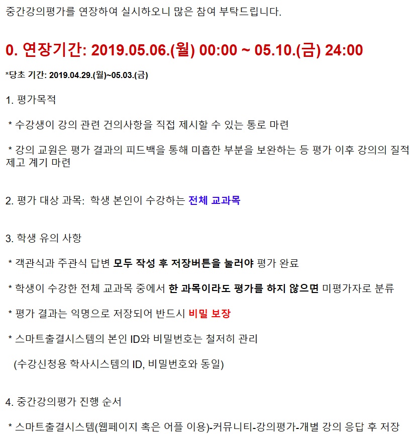 2019학년도 1학기 중간강의평가 기간 연장 안내