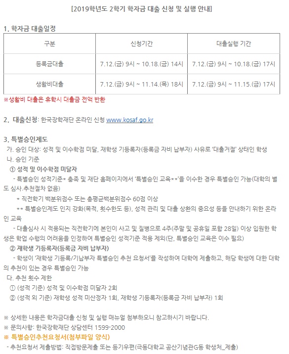2019학년도 2학기 학자금대출 신청 및 실행안내