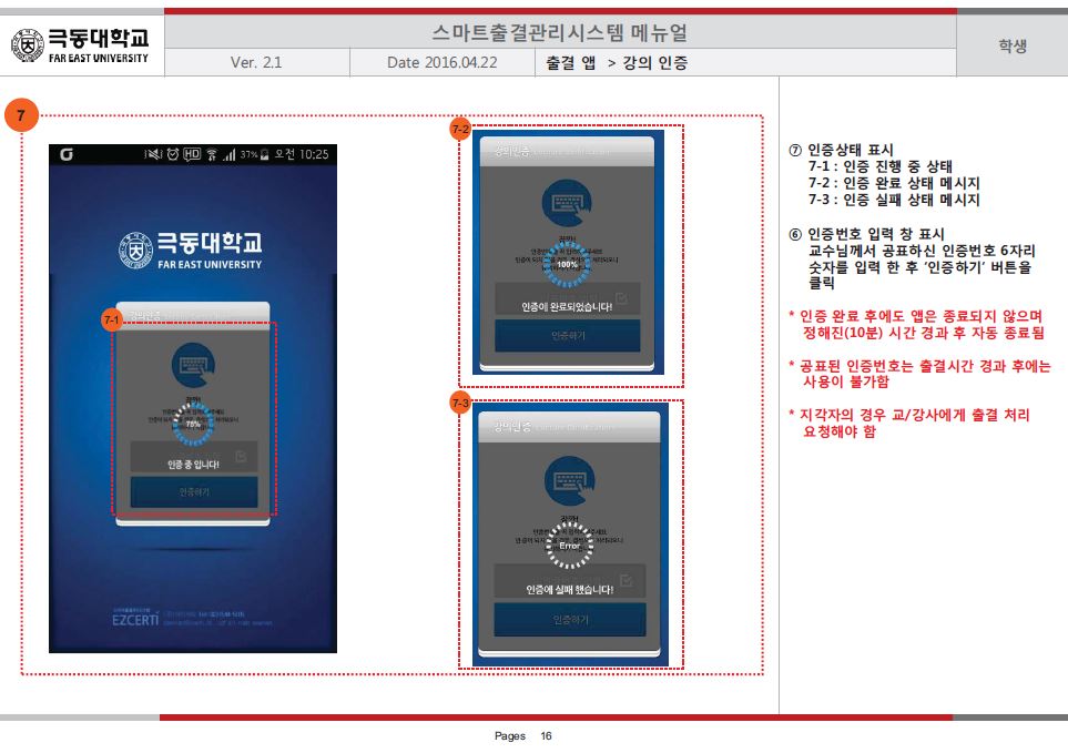 -출결시스템 운영 기간: 2016. 05. 18. (수) ~ 종강일( 약 5주)