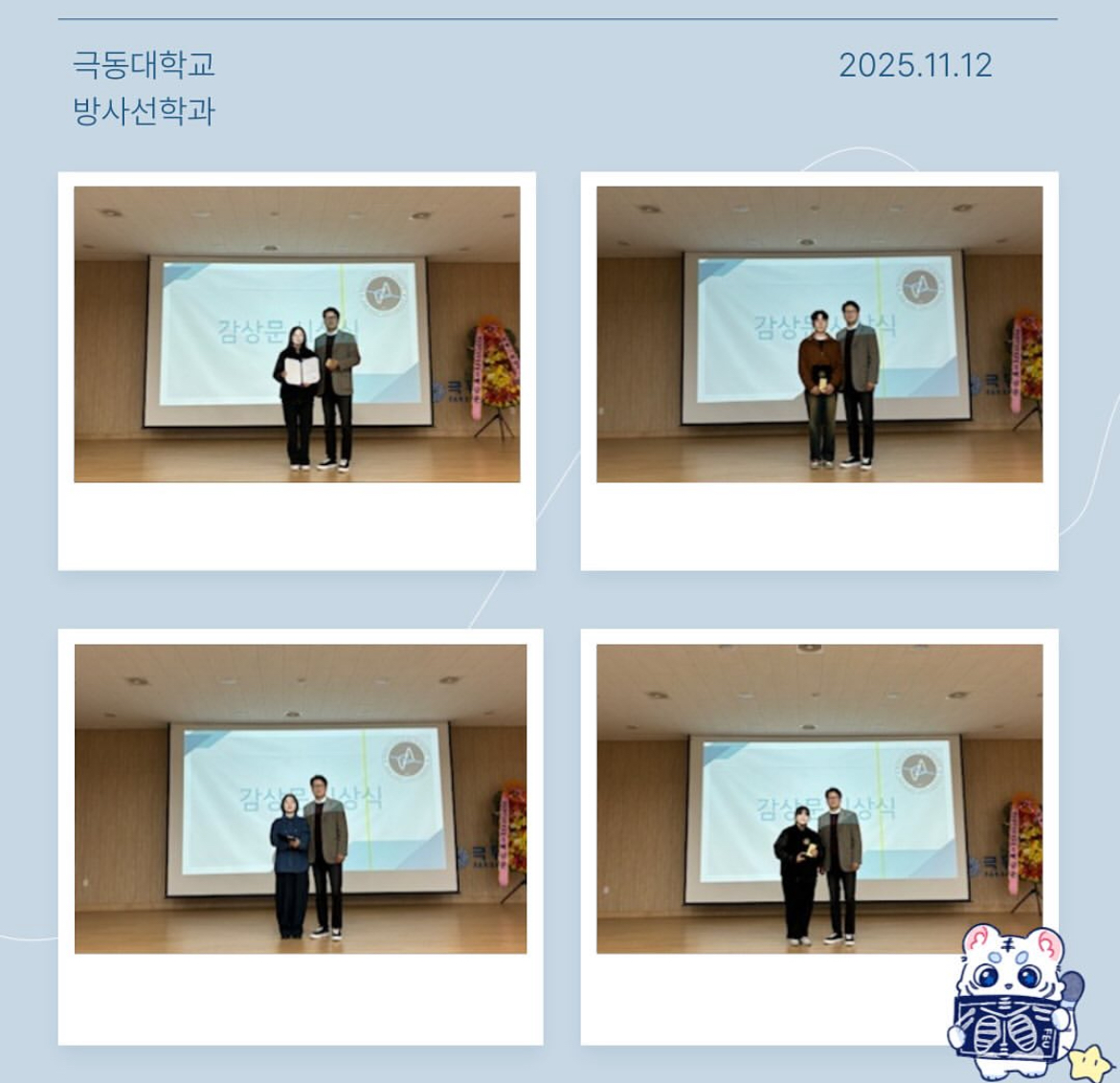 이후 학술제 견학 감상문 시상식, 그리고 차기 학회장 공약 발표 및 투표가 함께 이루어졌습니다 🙌