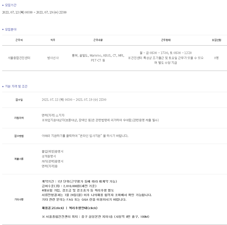 [강북삼성병원] 서울종합건진센터 방사선사 모집 : 강북삼성병원 Careers (kbsmc.co.kr)