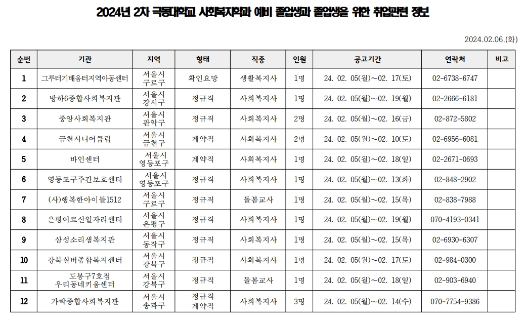 2024년 2차 사회복지학과 취업관련 정보20240206